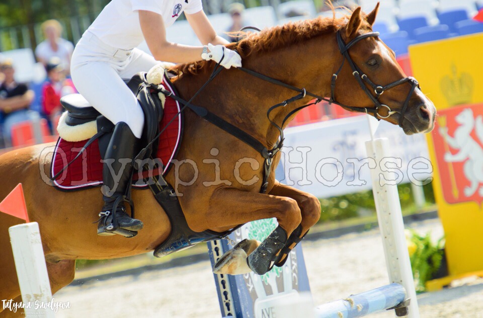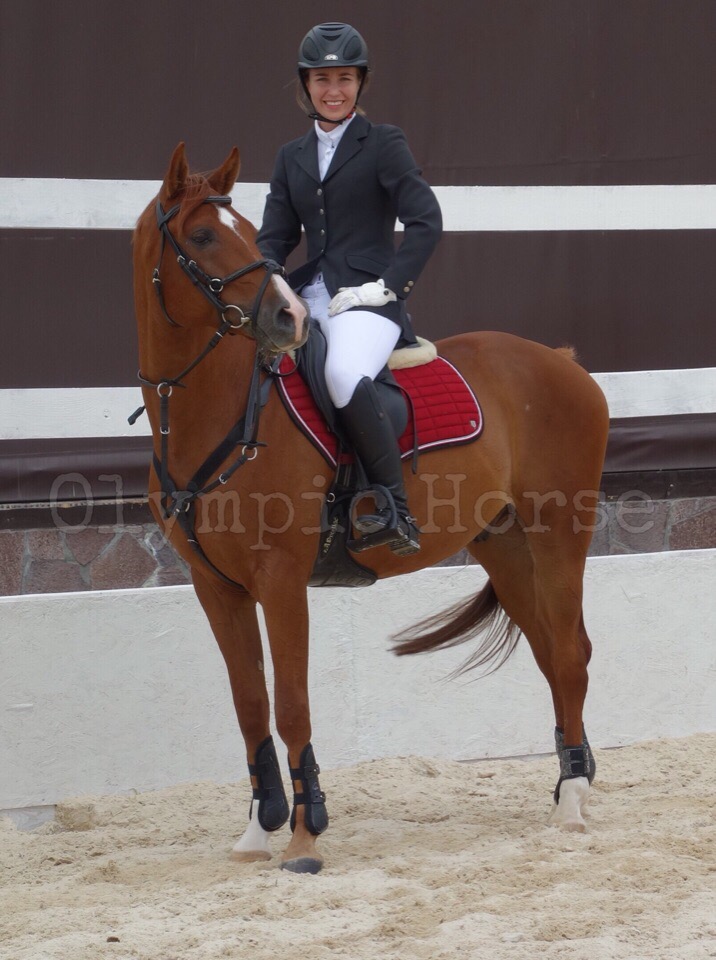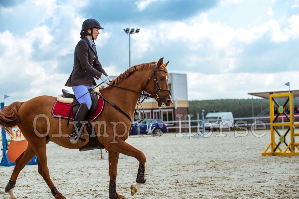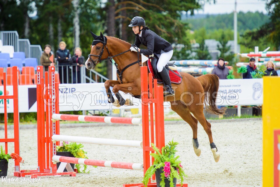 Красивый мерин в любительский или детский спорт, с 2015 года регулярно участвует в соревнованиях, в этом сезоне стартовал по высоте 100-110 см. На выездных всероссийских соревнованиях привез 2 разряд по конкуру. На маршруте внимательный к всаднику, резвый и очень гибкий. Отлично выезжен, знает боковые, мягкий на рот