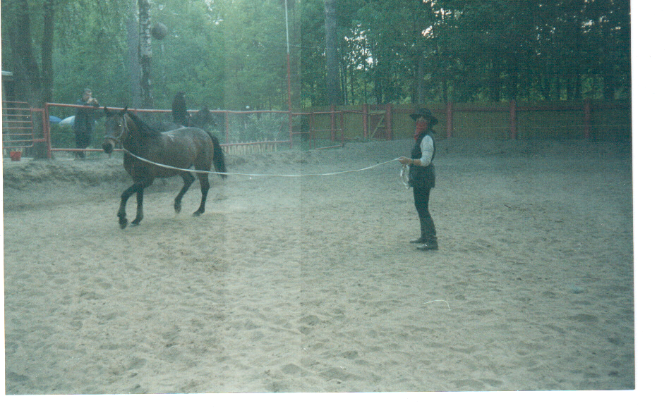Все-таки вестерн все время вносит сумбур в мои ''причесанные'' мысли. Я не успеваю задать тренеру массу вопросов. Мы год не виделись и давай болтать-болтать-болтать. А дома я думаю: "А зачем лошади надо так низко держать голову?" (я назвала это ''Пятно, след!":D), а как же насчет того, что вес должен быть в равновесии с весом всадника т.е. где-то в районе подпруги? А как же уверение, что именно из такого положения лошади легче всего маневрировать ( и я это вижу в корриде, например), а вот при работе со стадом- мне кажется, там вес на переду. Вопросы-вопросы. Надо будет не забыть их задать в след.раз;)