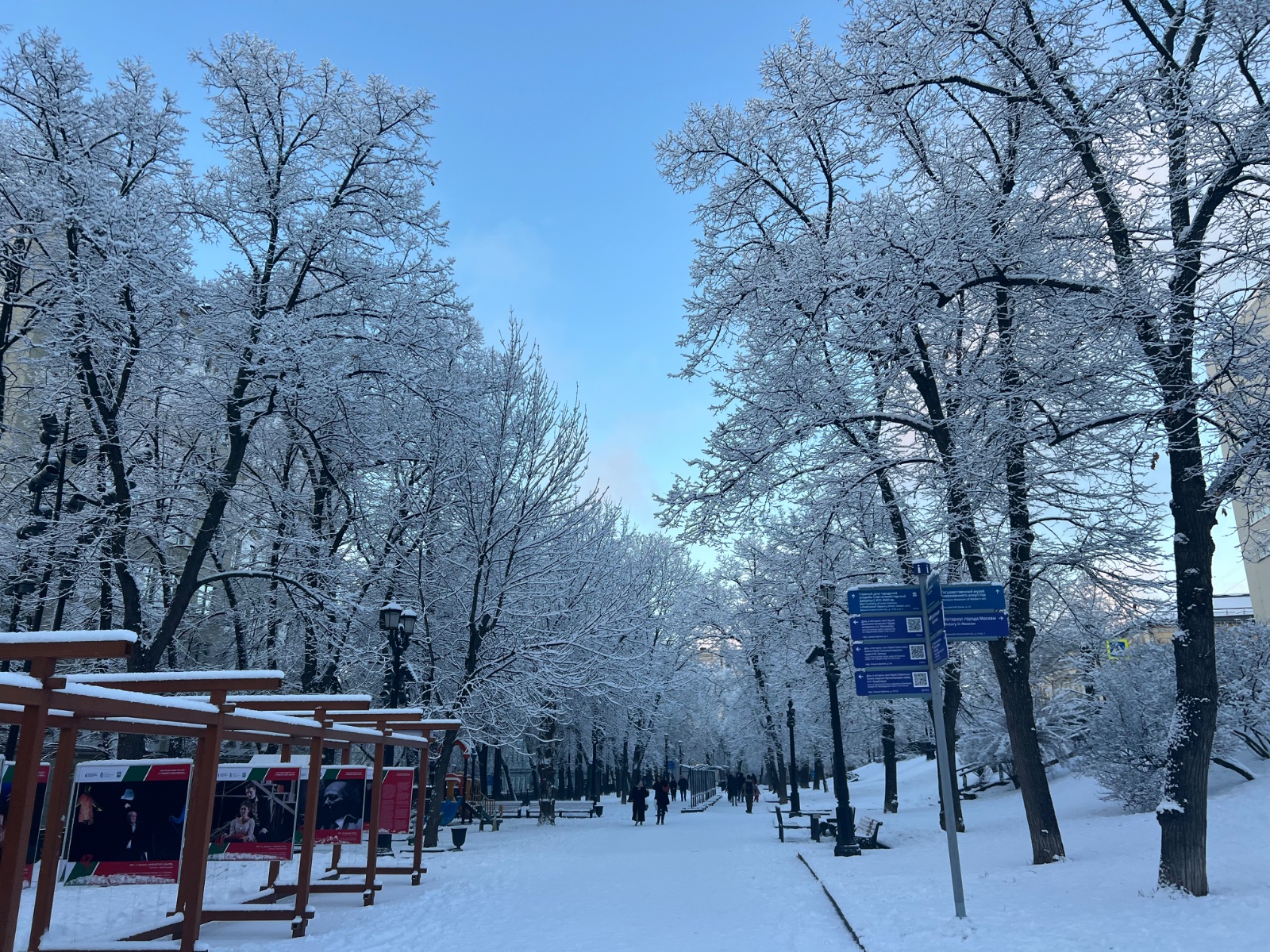 О, на Тверской тоже деревья в снегу стоят, красота! Бокалы с шампанским искрятся. Я сегодня только выползла по бульварам пробежаться, зато урвала кусочек солнышка и голубого неба ?