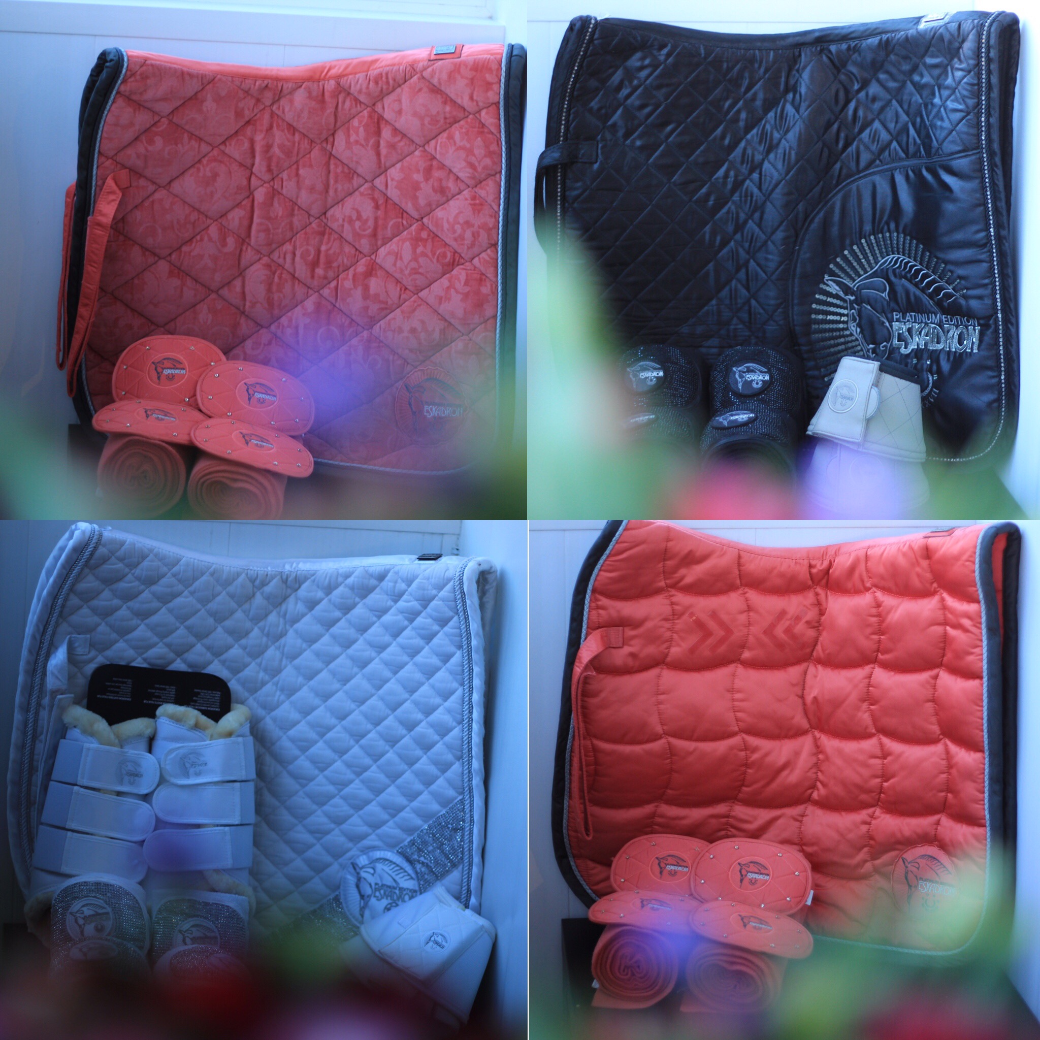 4) Комплект ESKADRON Platinum. Цвет коралловый. Вальтрап размер выездка, бинты 3 м. Вещи в идеальном состоянии.