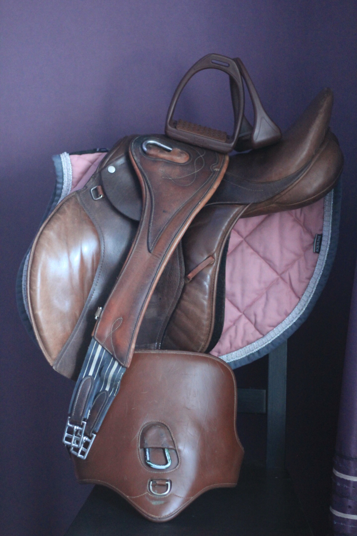 10) Троеборное седло фирмы Орловская. На средне-широкую спину. Средне- высокую холку. По всаднику 17,5 см. В сборе пластиковые стремена новые! размер на взрослого (12см). На выбор подпруга антарес 120 см и фартук фирмы престиж 120 см.