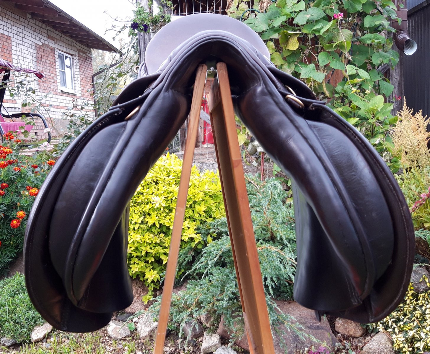 Очень мягкая кожа, упоры идеального размера, сидишь, как на дорогом кожаном диване . В своё время привозилось из Англии. Подойдет на среднюю/высокую холку и среднюю спину. По всаднику 17", по лошади 31см. Рассмотрю вариант обмена на седло для пони.