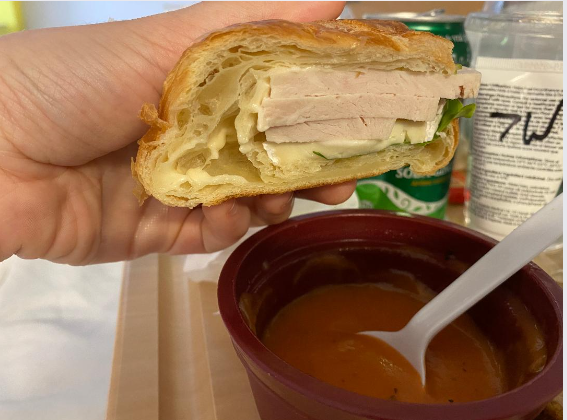 Вот пара примеров (все я не снимала :)). Это ланч, целый круасан с сыром бри и индейкой и томатный суп: