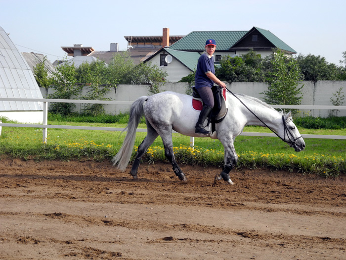 Ира пока ещё в самом начале пути, но она старательный ученик! Ира очень требовательна к себе, а это хорошее качество для спортсмена. :!: Сейчас я учу её требовать послушания от лошади, проявлять в работе с Заей упорство и характер. Зая умница, она никогда не делает никаких гадостей и подлостей, не издевается над всадником ради своего удовольствия. Но она не любит нерешительности в седле. Если человек спокойно и уверенно даёт ей понять, что берёт на себя роль лидера, Зая прекрасно работает с полной отдачей.