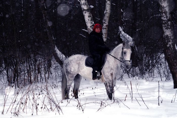 О да, снега в полях навалило - можно плавать...мы сегодня туда совсем ненадолго сходили, развернула кобылу на полпути, подумала, что для первого раза по таким сугробам попу качать достаточно. Так она на обратном пути в какой-то момент сама перешла на галоп и не могла остановиться, пока на более менее утоптанную тропинку не вышла. Было ощущение, что если раньше на рысь перейдет, так туда с головой и закопается, а так кой-как из сугробов выпрыгивает :lol: