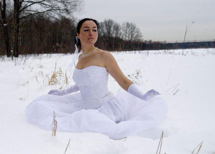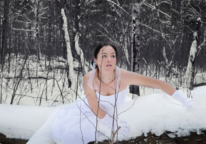 Мы все очень старались, чтоб получилось красиво! "История" такова: невеста сбежала со свадьбы, ибо её пытались выдать замуж за какого-то монстра (какого именно мы не придумали, но видно ужасен был конкретно, ибо девица рванула в зимний лес в одном платье :mrgreen: ). И вот она там по лесу бегает, мёрзнет и переживает различные эмоции - страх, отчаяние, злость (видимо на жениха :mrgreen: ).