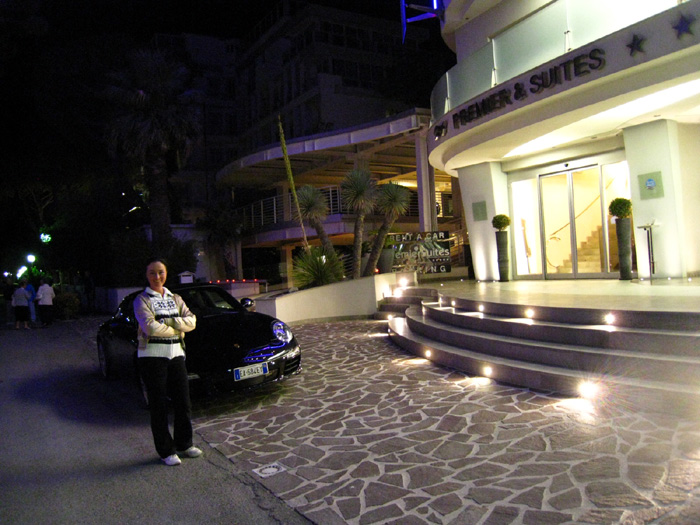Вот, кстати, ещё прикол с машиной - это порш, припаркованный рядом с пятизвёздочным отелем. Пока хозяина нет, можно сделать вид, что я вышла из этой машинки! :lol: