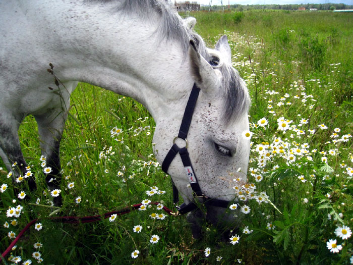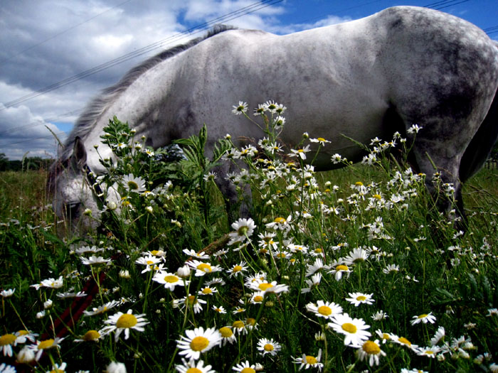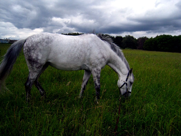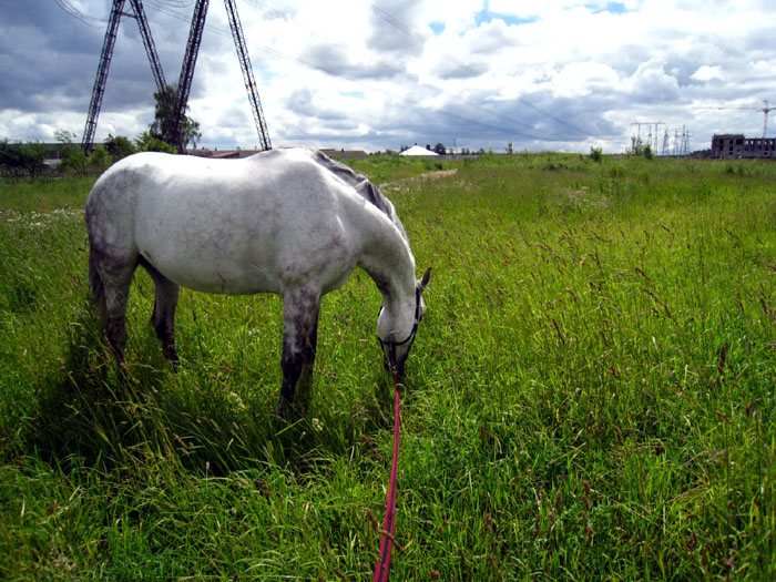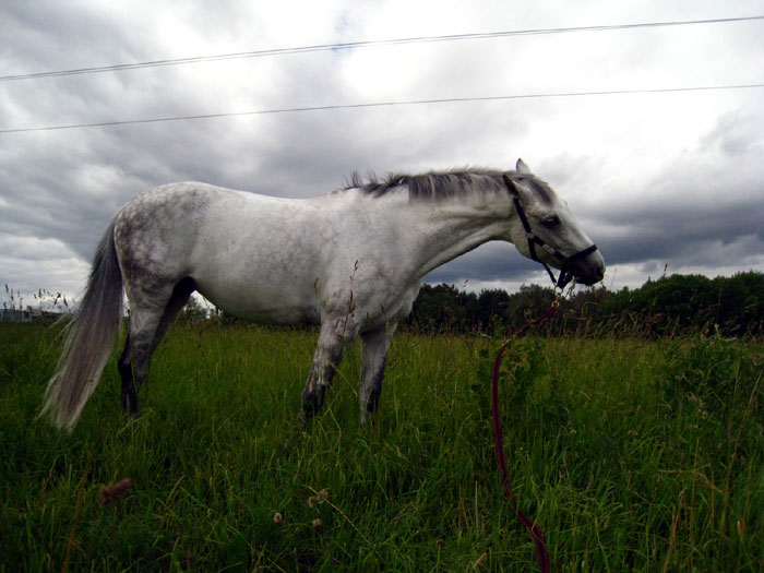 Сначала светило солнышко и лошадка наслаждалась теплом и пищей!