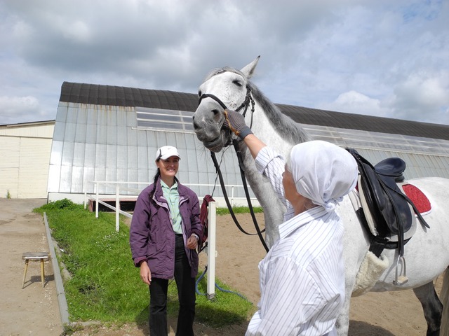 Всё нормально, просто у меня на фотоаппарате стоял не тот режим. Вот наиболее удачная фотография Заи. Про себя молчу, т.к ноги ушли вперед и не понятно, что я там пытаюсь изобразить (что-то вроде "..мы бравые кавалеристы и про нас... :lol: ).