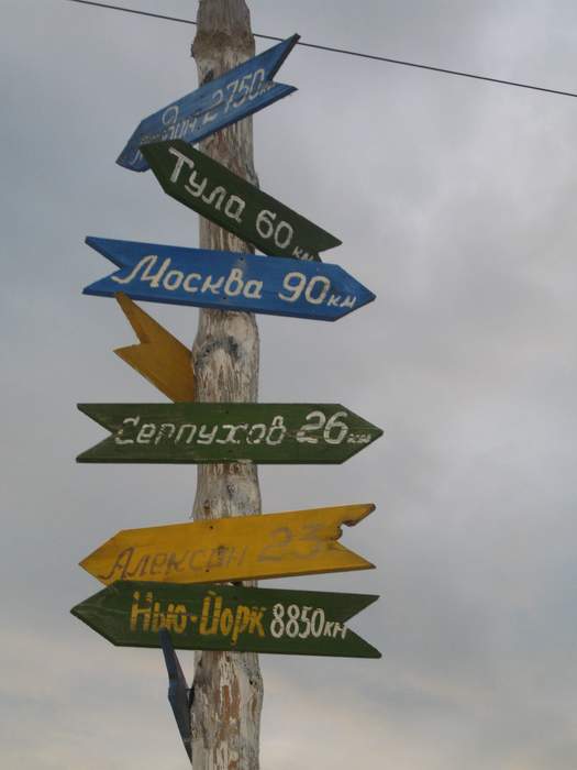 Надо найти еще одну, тож симпатишная, там ПарЫж упоминался, вроде. Это тоже прикол из лагеря. На берегу Оки располагается местное ночное питейно-дискотечное заведение, где в последний раз даже стрельба имела место быть, а мимо сравнительно приличная автодорога, и вот они там развлекаются на всю катушку с указателями. По пути к пляжу, например, висит транспарант с надписями "Пляж" и "На Плетенку!" с обеих сторон, смотря куда идешь.