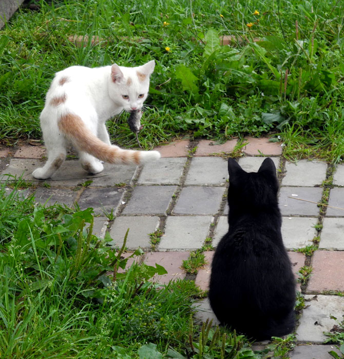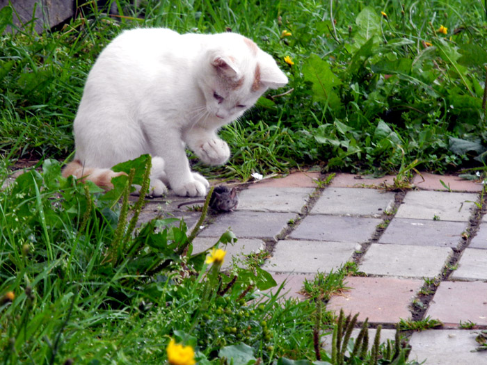 "Слышь, мышь, это я, я тебя поймал! Я тут хищник! И не поворачивайся спиной, когда я с тобой разговариваю!!!"