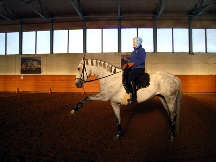 Воспользовавшись ярким солнцем, светившим в окна манежа, пофоткала чуть-чуть. Реально чуть-чуть, ибо был уже самый конец тренировки. ИШ. Вернее ещё не Ш :lol: , а только поднимание (попеременно) передних ног, но уже только по команде всадника. Без моего присутствие перед мордой Заи с просьбами дать ножку! :lol: