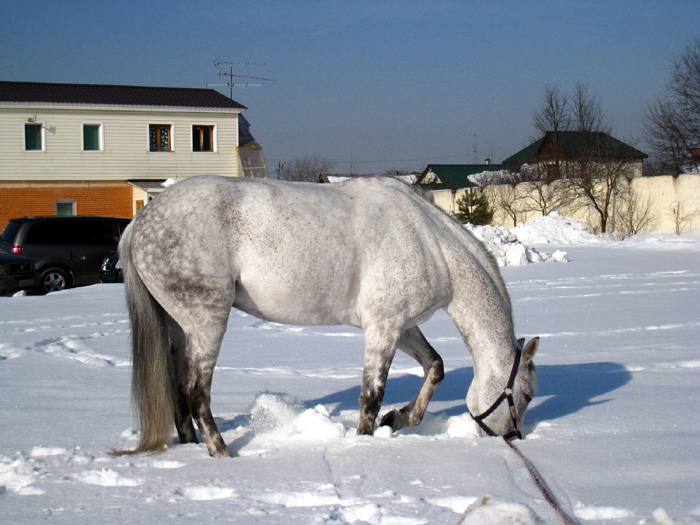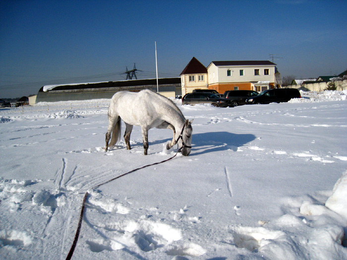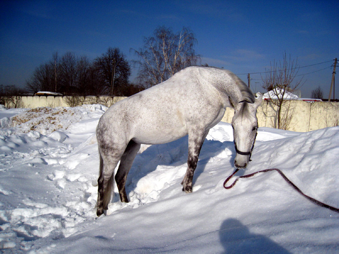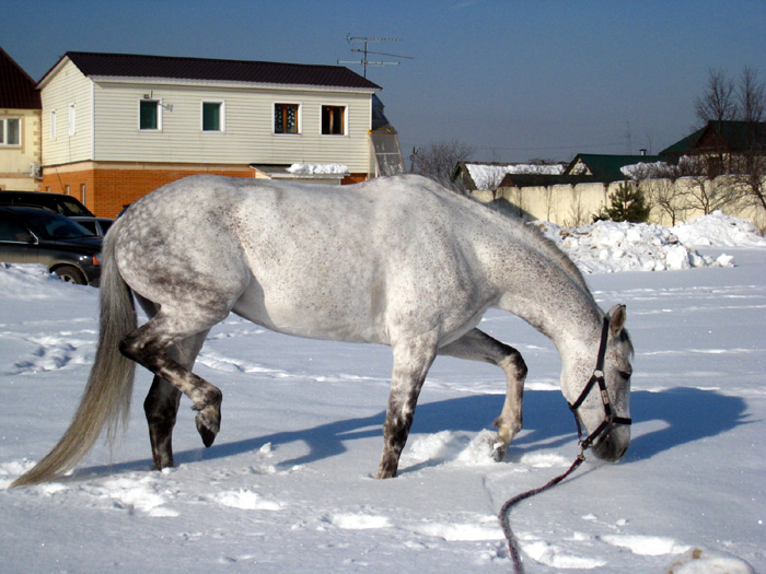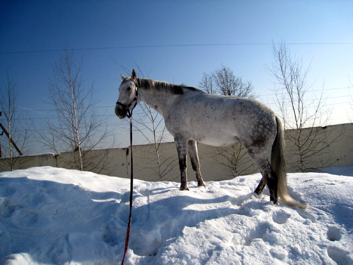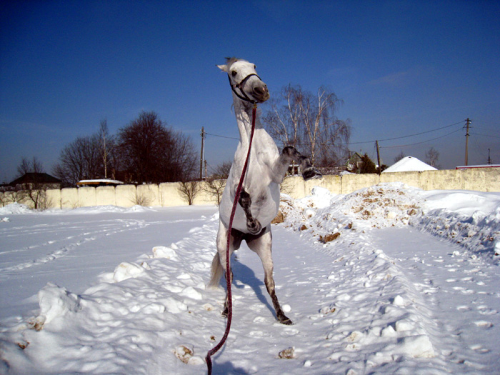 А если это просто послушание? Вот научили лошадь слушаться человека беспрекословно, она и делает это всё потому, что слушается, а не потому, что доверяет. Соглашусь, это может быть критерием доверия, но может ли это быть единтственным и абсолютным критерием? :?:Grey Star написал(а):Доверющая лошадь позволит человеку делать с ней что угодно и пойдет за тобой куда угодно. Хоть вдоль трассы с гремящими КАМАЗами, хоть в сугробы по колено, в воду, на горы и т.д. Спокойно лежит в деннике в присутствии человека