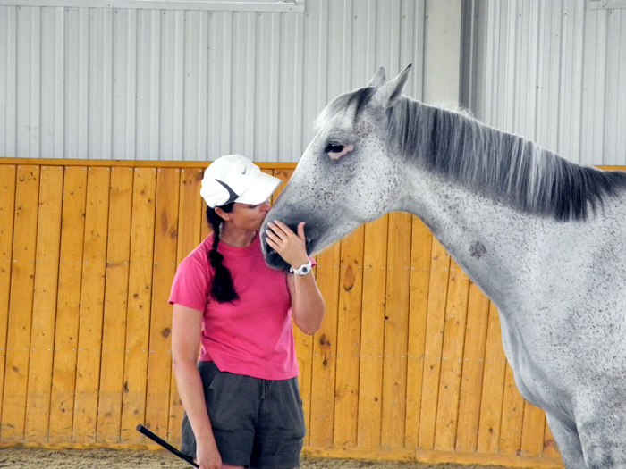 Но КАК?! В смысле, ЧЕМ?! В моё понятие работы на свободе входит то, что человек должен сначале добиться от лошади, чтобы она захотела остаться с ним, а потом, чтобы захотела сделать то, что он просит. То есть, если всадник скручивает лошадь поводьями, лупит хлыстом и добивается желаемого, тут всё понятно - лошади просто деваться некуда. А на свободе-то она может уйти! Ну или хотя бы не делать то, что причиняет ей дискомфорт, а зажатость, на мой взгляд, должна причинять этот самый дискомфорт лошади. Поэтому мне реально интересно, как можно зажать ничем вообще не связанную лошадь?...