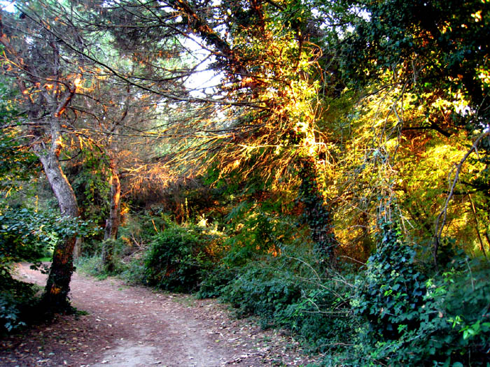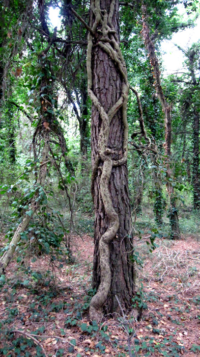 А это сосна ЦЕЛИКОМ увитая плющом!!! :shock: Он заплёл её всю, вместе с ветками. Не думаю, что сосна от этого в восторге, но смотрится эффектно! :wink: