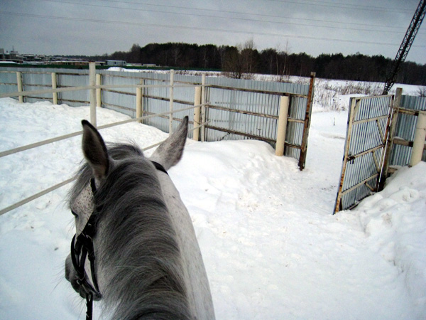 Вот я тут пишу, пишу, а до самого интересного всё никак не доберусь! У меня же для вас куча фотографий есть! :D Мы в понедельник поехали с Заей в лес и я взяла с собой фотик. Так что получился фотоотчёт о прогулке, но не совсем обычный. С седла. :wink: Главное действующее лицо – собственно Зайкино лицо. :lol: Фоток много, буду выкладывать постепенно.