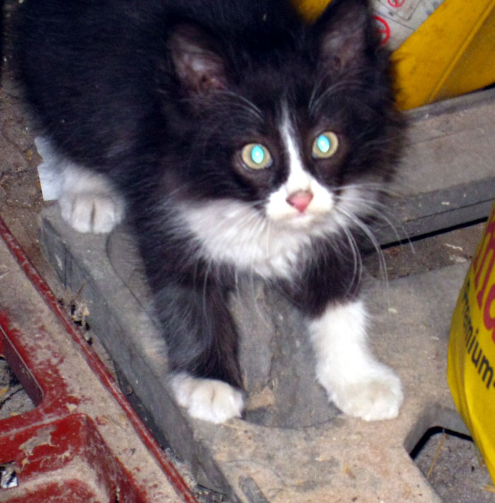 Конечно, на фоне такой экзотики обычные конюшенные кошки покажутся банальными, но чем богаты... Это я буквально сегодня сфотографировала – маленькое существо с элегантным именем Сандра. Я долго гонялась за ней с фотиком и наконец подловила на выходе из амуничника.