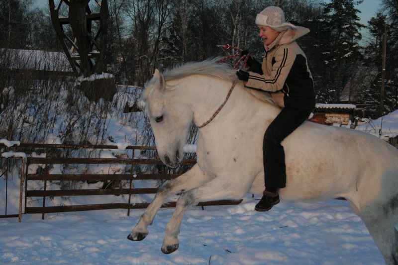 Жаль :( А вообще, вспоминая себя - я почти 6 лет одна ездила в лес, иногда с кем-то. И мне очень нравилось, потому что сам себе хозяин, сам ритм задаёшь, у коня всегда "крыша" на месте :lol: Так что, во всём есть свои плюсы, правда иногда хочется компанию.