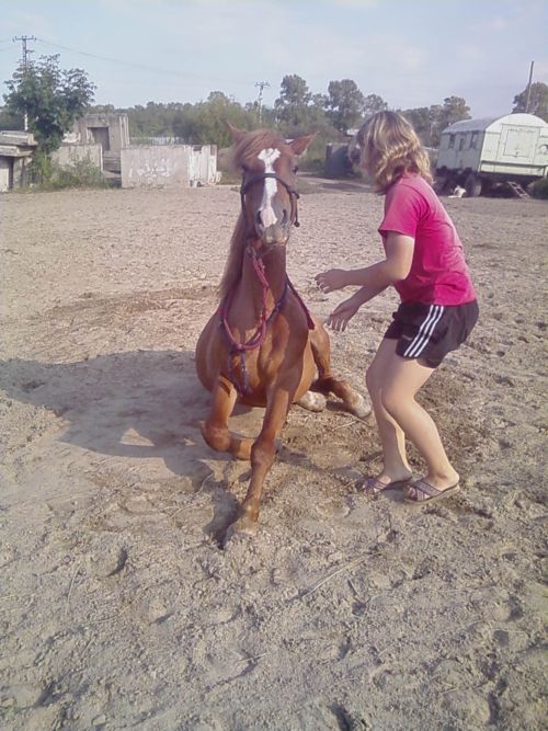 Сегодня играли с Аськой в Дружелюбную игру (это когда нужно доказывать лошади, что ты не причинишь ей вреда: наматывать на ноги веревки, бегать вокруг нее, даже прыгать возле нее и все с улыбкой на лице :D ). Все нормально, но когда я начинаю высоко подпрыгивать около ее головы, она начинает агрессивно реагировать: закладывает уши, топает ногой и клацает зубами. Может не надо прямо около ее головы так скакать , а? Или может быть я так истерично прыгаю, что это начинает раздражать? :roll: