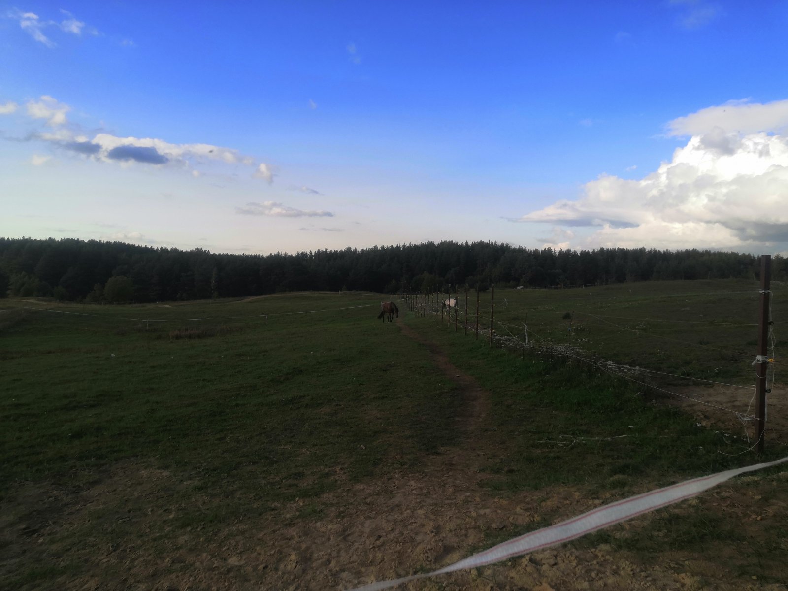 А потом пошли на улицу в леваду. Паша уже вполне пришел в себя и смотрел с любопытством, вошёл в леваду, отстегнул а чомбур. А дальше я 4 часа наблюдала за счастливой лошадью который носился галопом, знакомился с соседом жеребцом и табунчиком кобыл, показывал Манежную рысь и делал арабский хвост