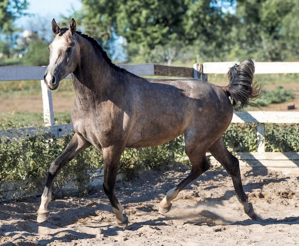Заезжен в марте 2025 года, не форсируется. Очень приятный в работе: честный, слушающий, старательный, удобный. Напрыган по одиночным до 90 см, шпринт до 140 см. Абсолютный чемпион по типу, экстерьеру, прыжковым и двигательным качествам 2025 г.
