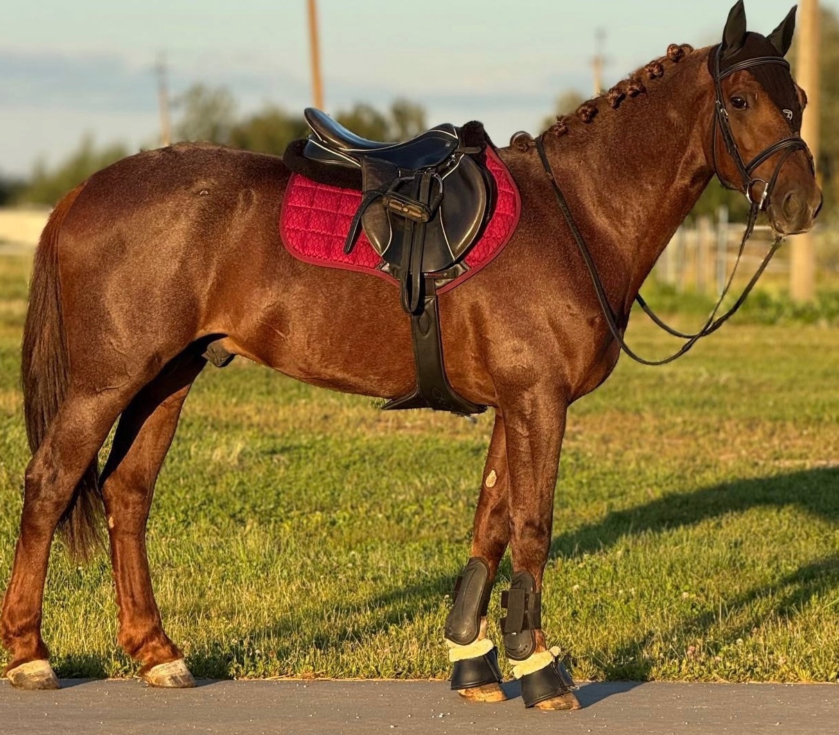 Старты - маршруты до 90 см. Дома - связки до 100 см, шпринт до 140 см. Ходит в поля. За человеком и в огонь, и в воду. Адекватный, любознательный, безопасный, на кобыл не реагирует. Можно доверить ребенка.