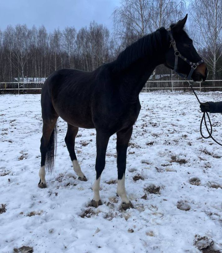 Находится в стадии заездки, начинают шагать под верхом. Напрыган в шпринте до 90 см. Смышленый, общительный. Спокойный, ничего не боится.