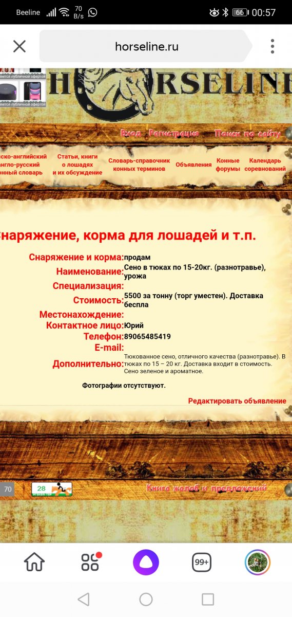 Предупреждаю, данный человек является к кидалой, берет предоплату за сено и находит кучу отмазок почему он не может привести товар, ну или просто не берет трубки.