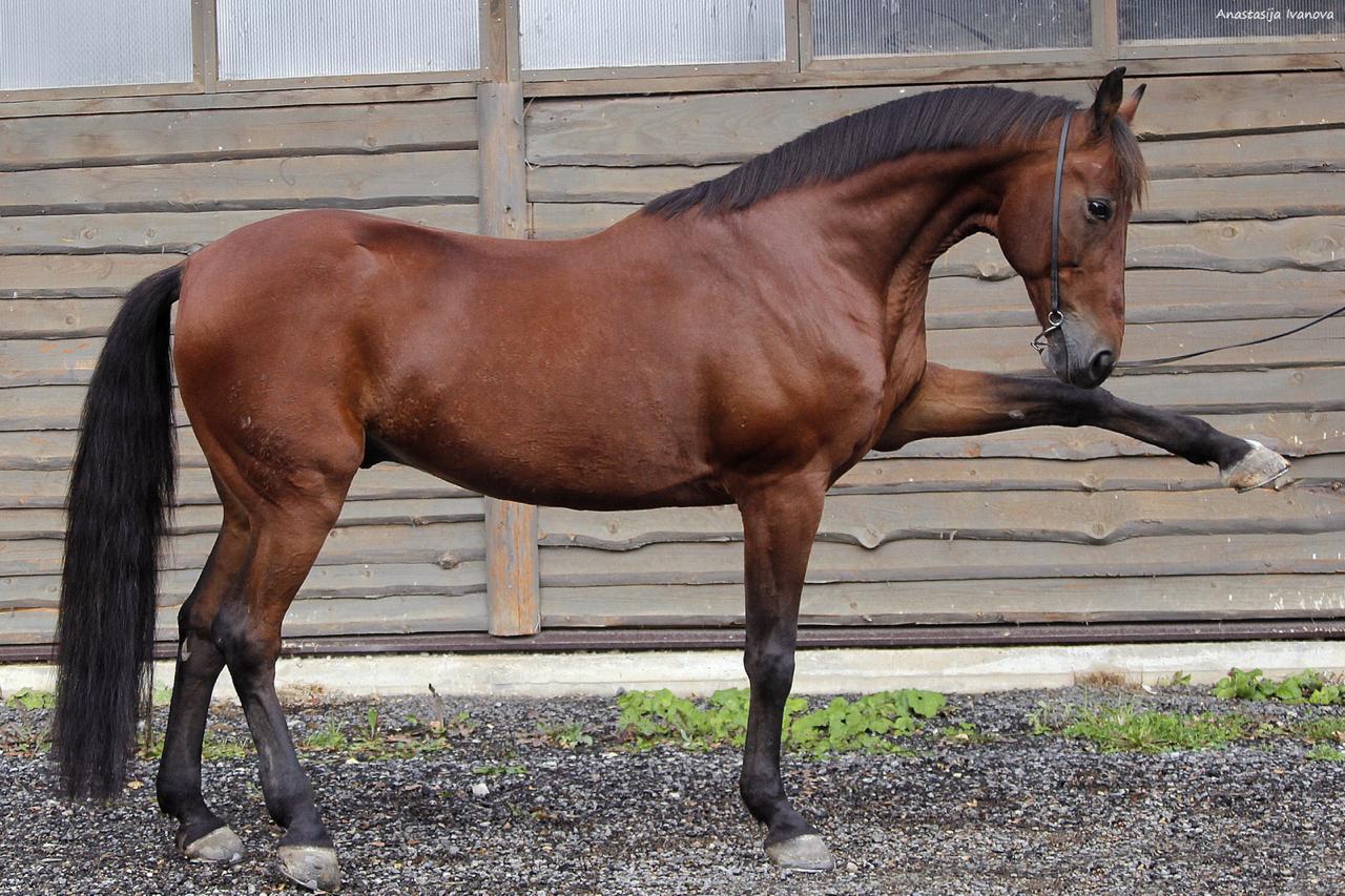 Мерин русский рысак 2004 года рождения, не высокий, добрый, тискательный конь, не кусается, не отбивает, очень весёлый и деятельный, имеет возрастные изменения по суставам, держит легкую манежную нагрузку, шаг/рысь, подъемы в галоп. В полях шаговые прогулки, купается.