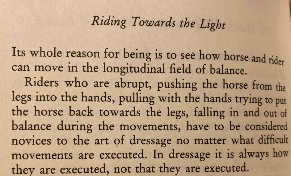 Запишу тут, мне еще очень понравилось предложенное ей упражнение для лошади, которая любит "умирать" на боковых, выезжать на диагональ, три четверти диагонали ехать активной средней рысью, а с четверть линии до стенки или уступкой или приниманием. Потом можно боковые начинать и с цетральной линии, или даже с начала диагонали, потому что лошадь будет ждать среднюю рысь, если лошадь начинает тормозить, то опять выруливать на диагональную линию и опять средней рысью.