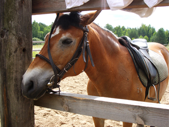 У нас все хорошо, стоит Кампуся со своим другом Гошей в подмосковье. Гуляют, пасутся, 3 раза в неделю бегают на корде. Скоро я совсем поправлюсь (рука все еще побаливает, я не рискую лезть верхом) и начну работать коняшкина. Он рвется в бой. Недавно отличился... :? Разломал плац, препятствия и самовольно учапал домой... в его духе