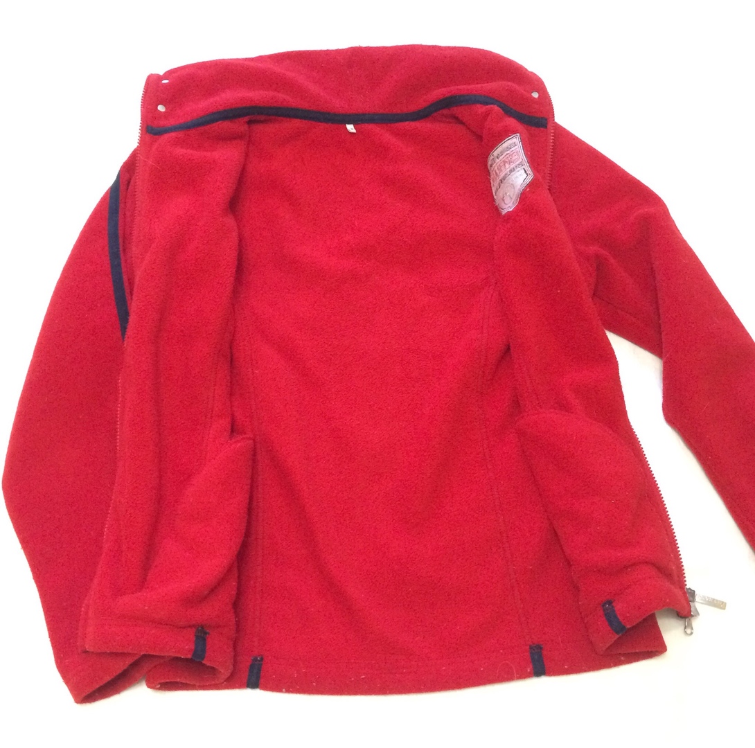 Кофта Esperado. Стильная, теплая (качественный флис) при этом НЕ жаркая! Идеально на осень-весну. В идеальном состоянии (надевалась пару раз), цвет красный, полоски темно-синие. Размер 42-44 (м), подойдет на 46. - цена 1000 р.