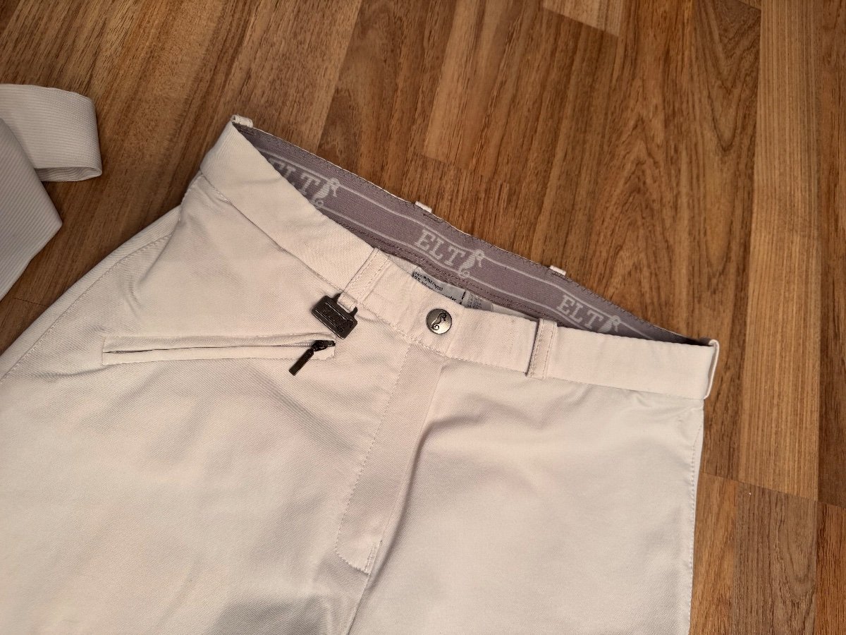 Бриджи белые elt , стартовые , полная лея, липучки внизу , потные ,не просвечивают , размер 36 (42-44)
