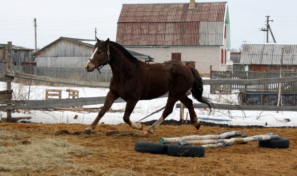 Ох как мы летели! Аки стрела! В голове , как не странно, паники не было. Только мысли о том, как же ее остановить. И свернуть то некуда, канава вдоль дороги..Еду и думаю, что вот сейчас сползу на бок и в канаву спрыгну. На тот момент , это казалась самая рациональная идея :mrgreen: .. Начинаю выполнять затею, сползаю потихоньку и ,вдруг, понимаю,что могу рукой до трензельного кольца дотянуться.. Схватилась за кольцо и дернула. Кобыла резко развернулась и встала, тяжело дыша. Чуть живая, я слезла с нее . Стоим, обе трясемся.. Пальцы правой руки потом долго не могла разогнуть..