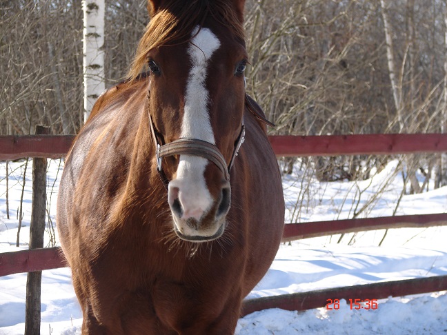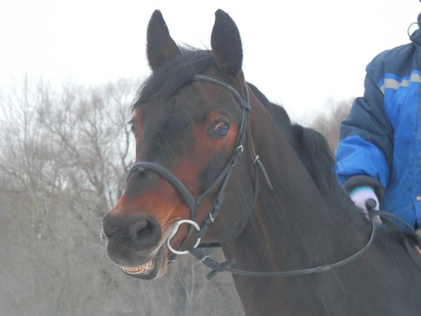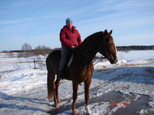 ...Как же здорово после перерыва вновь окунуться в чУдные запахи конюшни)) .Несмотря на то,что я теперь просто "катаюсь",удовольствие получила несказанное).. Только одно обстоятельство омрачило этот праздник жизни- отсутствие грунта на улице.Пришлось нарезать круги в крытом манеже .Он у нас небольшой,но поездить можно ( и даже попрыгать)). И вот я,на "дерижабле" Гильзе,маневрировала среди детской смены. Чувствуя себя при этом, как слон в посудной лавке))).Но Гильзон умничка,никого не задели,никого не съели(хотя попытки были :twisted: ).Дама,понимаешь ли ,в положении,нервная несколько))... А вчера выпал СНЕГ!!! Значит,завтра есть шанс поездить на улице,только бы мороз не вдарил..