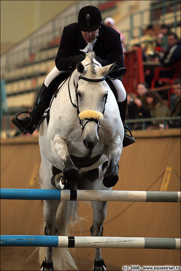 И Першай тут случился - прыгает где-то не ниже 120 на гнедой своей, достаточно крупной, и надо сказать, хорошо и мощно толкающейся лошади. Маршрут проходит, и препятствие у него следующее - не то брусья, не то чухонец у стенки, а между препятствием и стенкой можно свободно проехать.