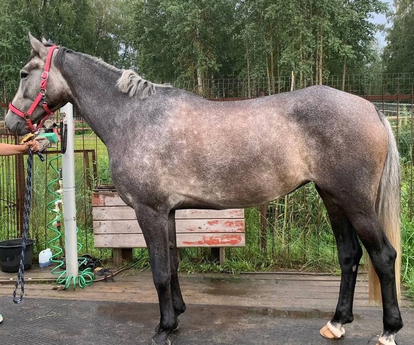 Кобыла, орловка, 4,5 года. Хобби-нагрузки, 3-4 раза в неделю работа под седлом или прогулки в лес.