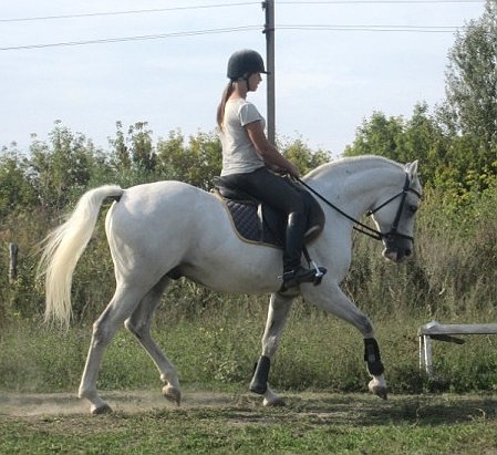 Где-то через месяц-полтора бездельничиства начали приучать к седёлке.Понюхал,одели – он не против.Так же бегал на корде,но теперь уже не в бочке.