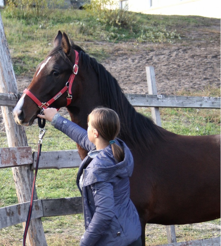 Пошли к вороному.Он был спокойный,взрослее ведь.Ему было 2 года.Хороший,довольно высокий,спокойный.Заезжен под качалку(что,кстати,нам было совсем не нужно).Понравился.