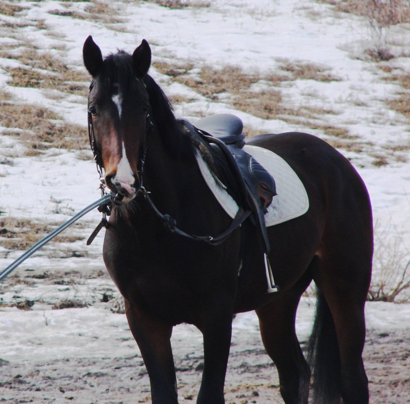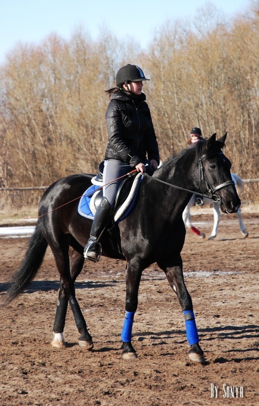 Февраль – опять шагаем…в конце февраля снова занялись работой,бегаем на корде,бегаем в леваде.Последние недели полторы бегаем уже с седлом и развязками.Скоро наша берейтор выйдет из сессии(ох и страшное слово) и будем всё-таки заезжаться.2 года ведь наступило.