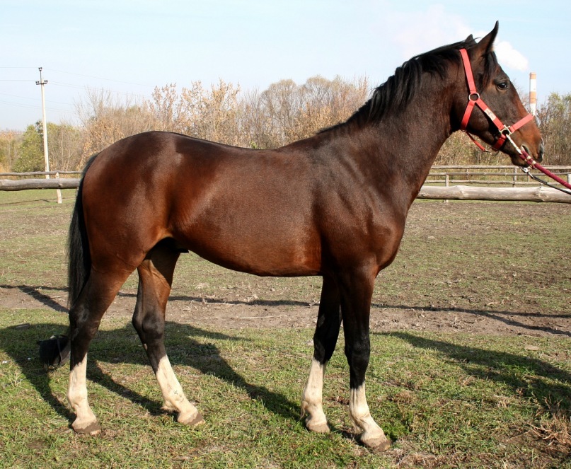 Пошли к другому.Ему – полтора года – ребёнок ребёнком.Довольно рослый для своего возраста,4 белых носка,унаследованных от отца,проточина ввиде капли и белый нос.Лазил за сахаром по карманам,бегал вокруг.