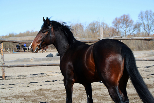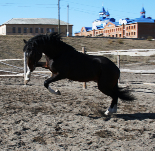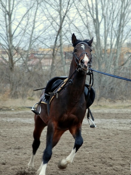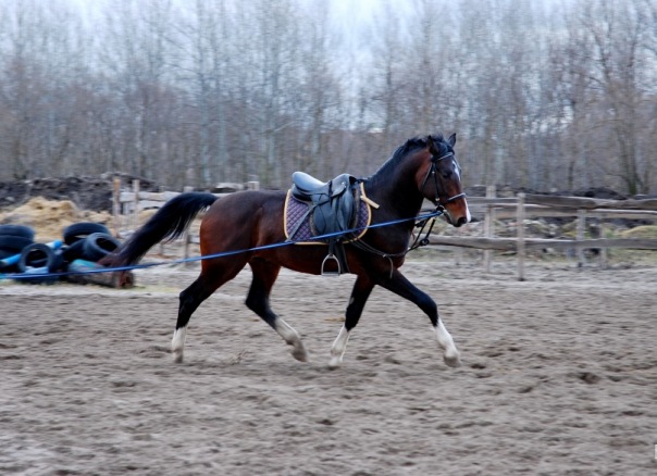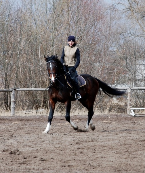 Мы заезжаемся)Руб вообще молодец,спокойно относится ко всему,в том числе и к Кате(а это самое главное)))Рысили на корде,сейчас уже делаем немножко галопа,и вчера отпускали Катю на нём без корды рысью)двигается,начал понимать назначение ноги у его бока)