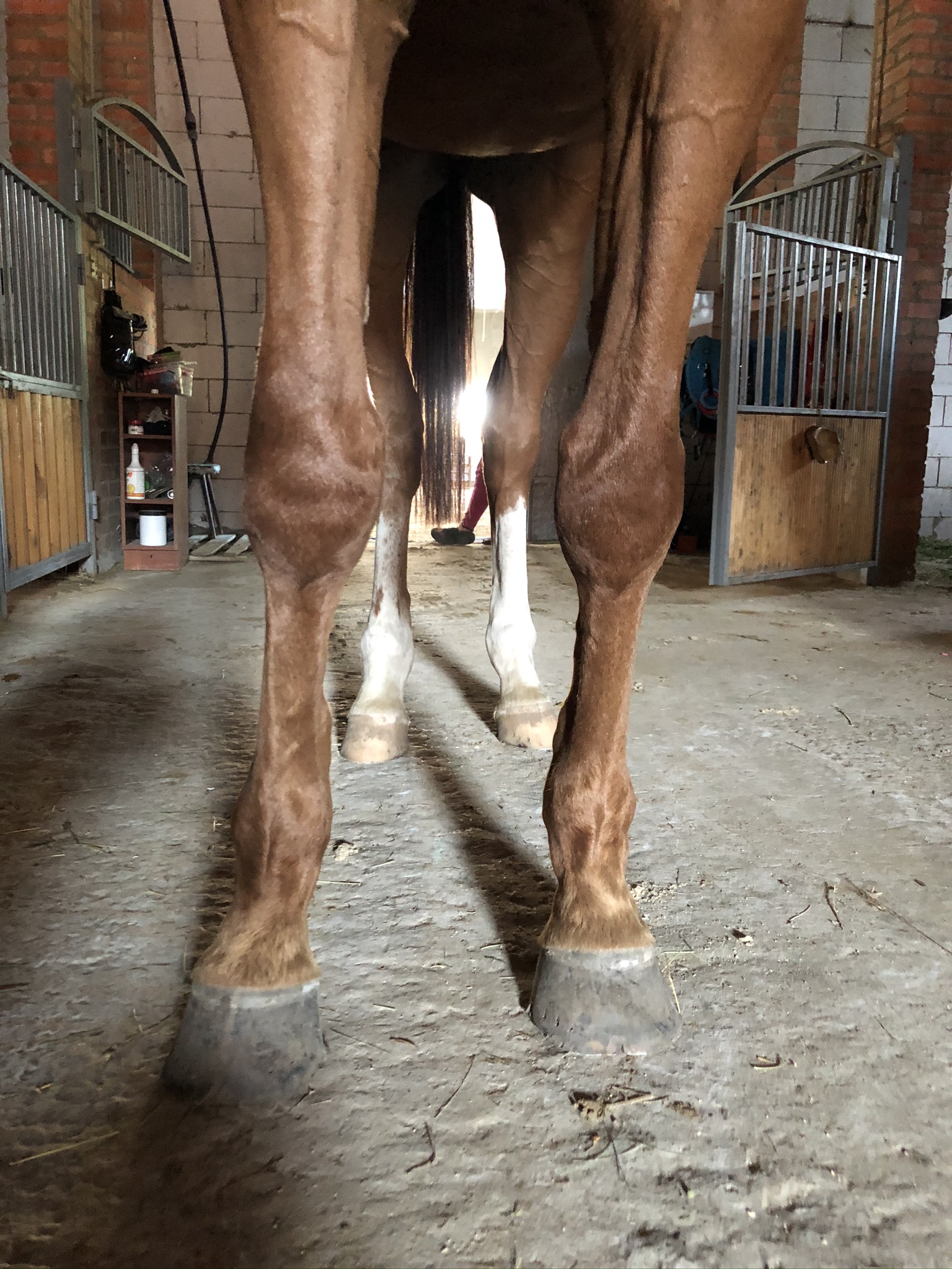 Мерин 7 лет, купили в этом году, смотрели с ветом и делали рентгены ног, прикрепила к теме. Были микротравмы суставов из за чего появляются наливы (мягкие шишки) на суставах всех 4х ног. Приглашала другого вета сказал менять постав подковами ортопедическими, так и сделали после чего конь захромал на правый перед и оба зада, проходили так неделю и сняли подковы - хромота ушла, но копытные остались налитыми, как и шишки не сошли. Вроде бы все было хорошо на протяжении 2х недель, наливы не сошли, но конь на них не жалуется. И вот на днях ходили в поля (только шагом), пару раз нас напугала то машина, то веточка и он подрывался немного. На следующее утро хромает на все 4, щупали мышцы и смотрели наливы изменений нет но конь хромает на все 4 и немного теплые копытные((((