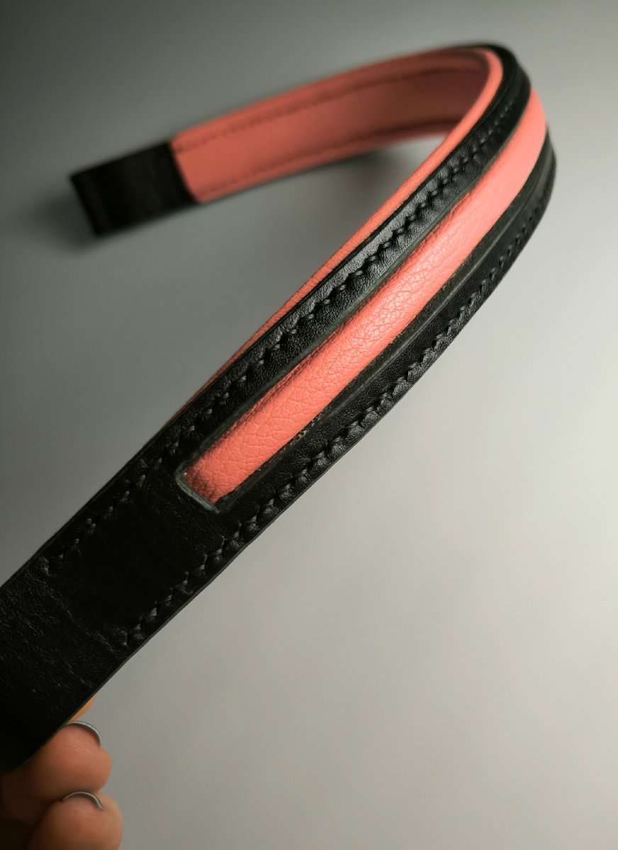 Налобник изготовлен полностью в ручную из плотной натуральной кожи КРС (общая толщина с подложкой около 7мм.)