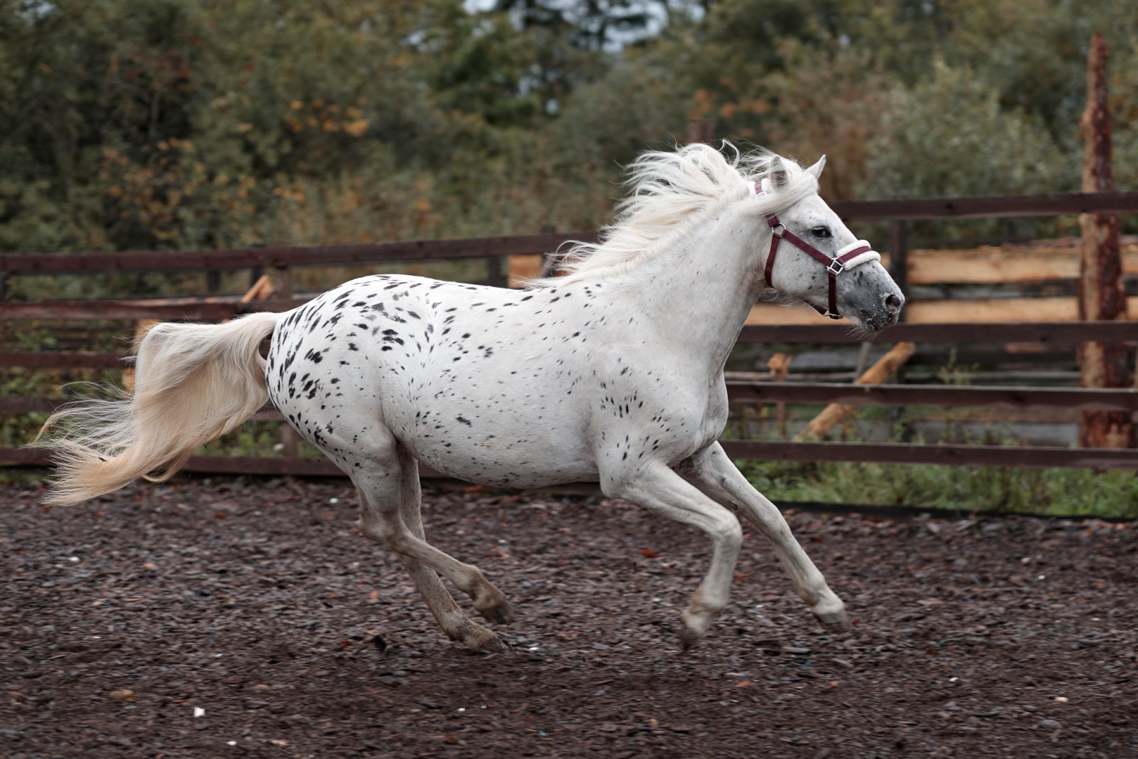 Со слов прошлых владельцев была заезжена, но мы начали всю работу этично с самого начала. Лошадь в постоянной в работе у берейтора, поставлены шаг-рысь под седлом.