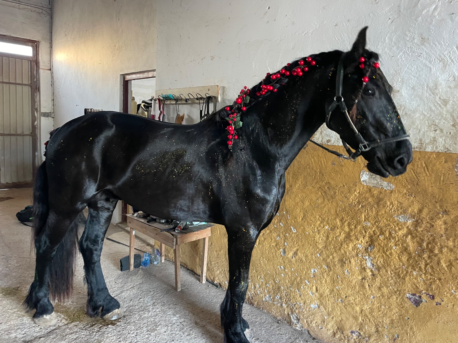 Потом было застолье с паэльей, приехала другая частница на своем коневозе с дочкой, лузиком (вроде) жеребцом и американской миниатюрной лошадкой. Приехала крутой испанский фотограф, мы декорировали территорию, коней, в общем, настроение было очень праздничное.