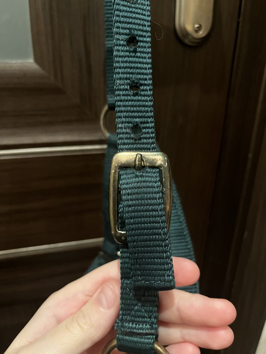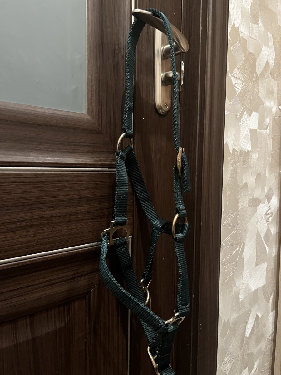 Недоуздок. Подойдет на пони или жеребенка. Покупалась очень давно, в пользование был пару раз. Фурнитура целая, только на одной застежки появились какие-то пятна.