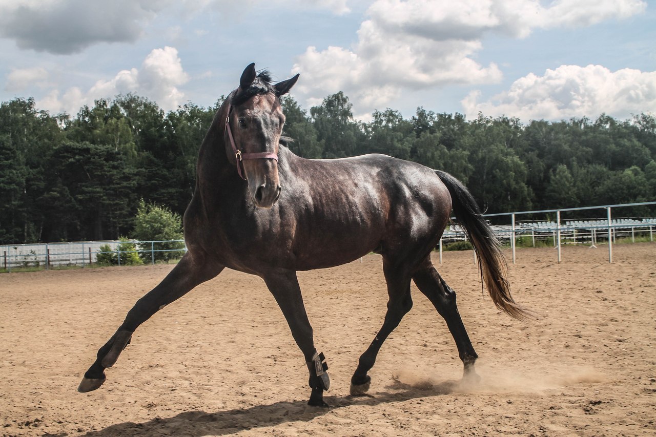 Не жеребцует, только немного кричит. но очень активный и любопытный в силу возраста, до безумия любит внимание. Немецкое происхождение, очень умный и отзывчивый, настроен на человека, быстро все схватывает, старается, хорошо идет на контакт. Очень мягкий диванчик, широкие удобные аллюры, не носит (если быть точнее не умеет), но может немного подыграть. Просторные летящие движения. Элементы выездки (плечо, уступка, принимание). Конкур до метра. Может и выше (шпринт до 160 спокойно), но в силу возраста не напрягаю. Только под ездящих всадников, не начального уровня. Выступал по выездке по молодым (езда 4 лет), набрал 67%, мог бы больше, не было времени подготовится, именно поэтому ищу арендатора. Занятия только с тренером. Все занятия на результат, но не в ущерб лошади, мне интересно что бы конь и арендатор выступали. Есть свой коневоз.