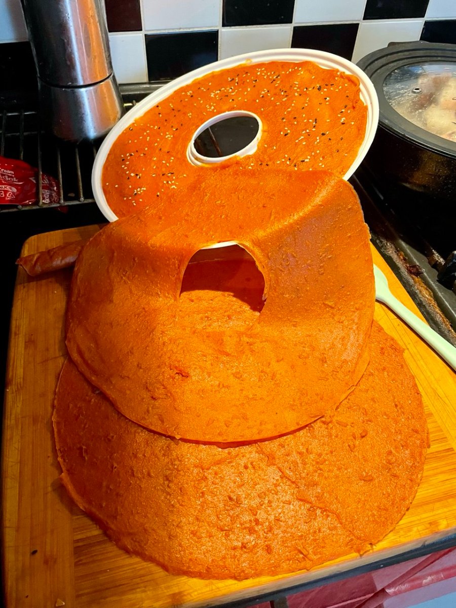 А пастилой, как просветил меня опальный ютюб, сейчас вообще называют все, что не лень - яблоки+виноград, яблоки+тыква, даже высушенный питьевой йогурт. Но вкусно, дешево, экологично и практично. Пастила в дегидраторе или сушилке - и куча роликов про как и сколько. Сегодняшняя с кунжутом, медом и пряная (мускатный орех, корица, кардамон, лимон) вернется в качестве погрызух для дежурного конюха на конюшню. Природообразный круговорот тыкв в природе?