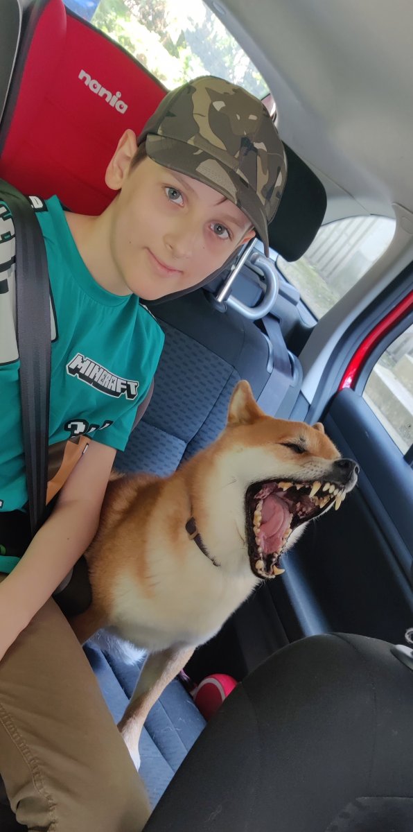 Живут через пару кварталов от нас, но у нее, увы, тоже сибас-подросток, поэтому собачки не подружились. Стояли рычали друг на друга, выясняли, кто тут главкобель.